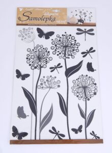 Pokojová samolepící dekorace - černé květiny s glitry na stěny, dveře, okna, zrcadla a jiné hladké plochy. Tato samolepka na zeď v mžiku oživí Váš obývací pokoj, koupelnu, chodbu, dětský pokoj či ložnici.
