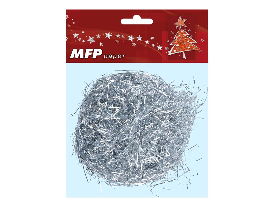 Vánoční dekorace stříbrné andělské vlasy. Vhodné na zdobení například vánočního stromečku nebo adventního věnce. Tyto třásně mají vysoký lesk.