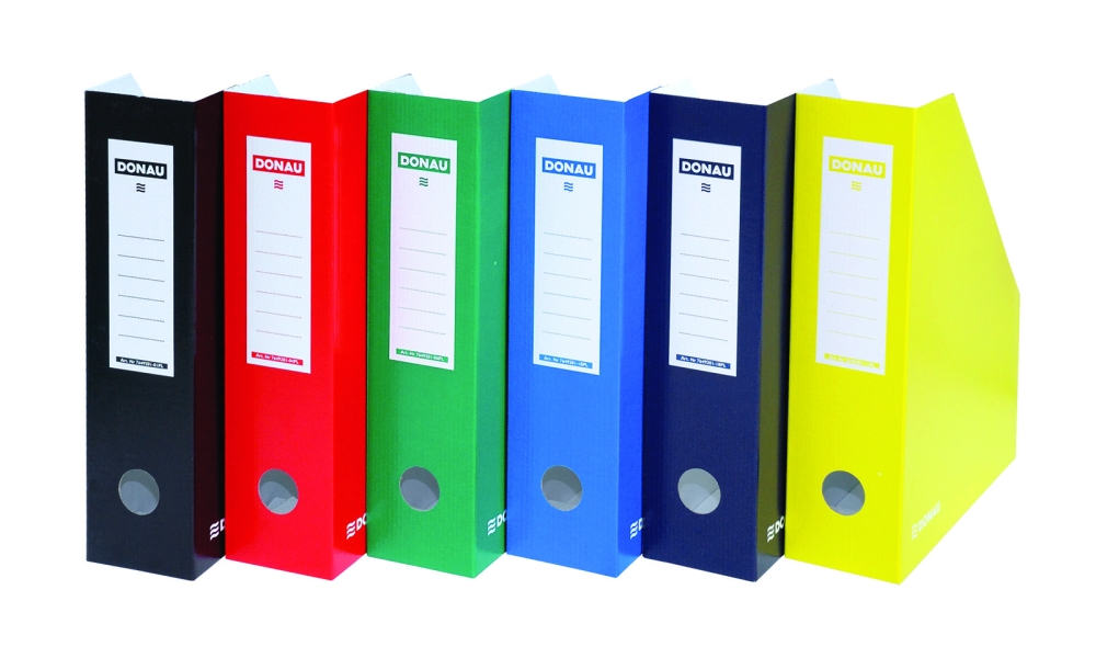 Stabilní stojan na časopisy, katalogy a další dokumenty. Otvor pro snadné uchopení stojanu. Popisovatelný hřbetní štítek. Možnost skladování v rozloženém stavu, velmi snadné sestavení. Vhodné pro archivaci, k třídění a uložení do archivačních krabic.