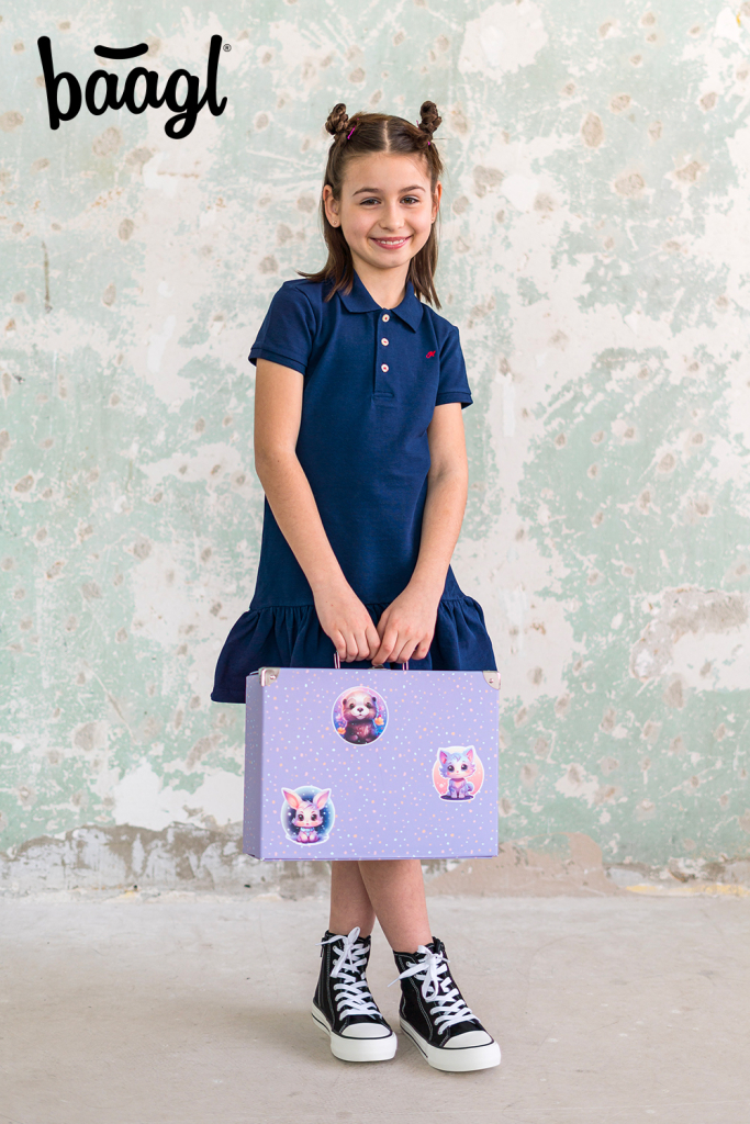 • Skládací kufřík z pevného laminovaného papíru s okovanými rohy.