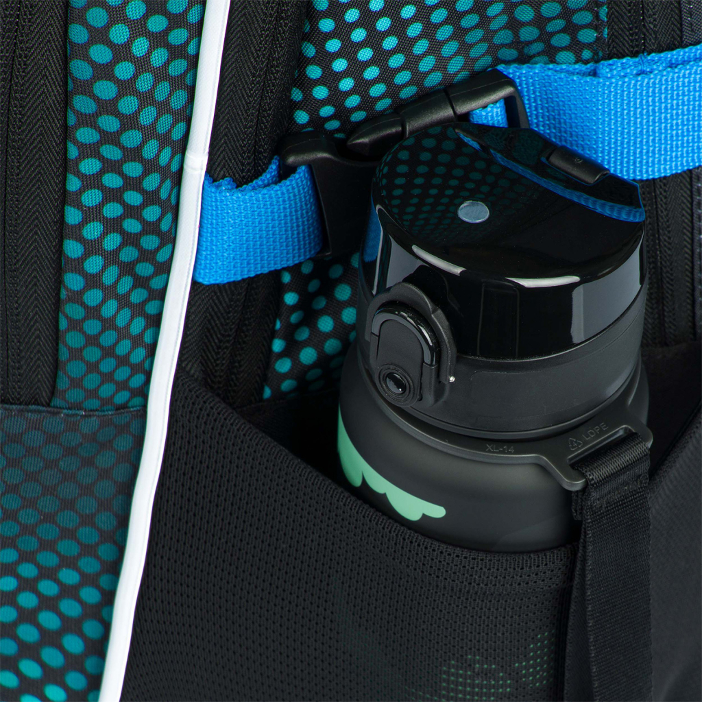 • Boční kapsy z pevné materiálu na láhev na pití či jiné drobnosti.