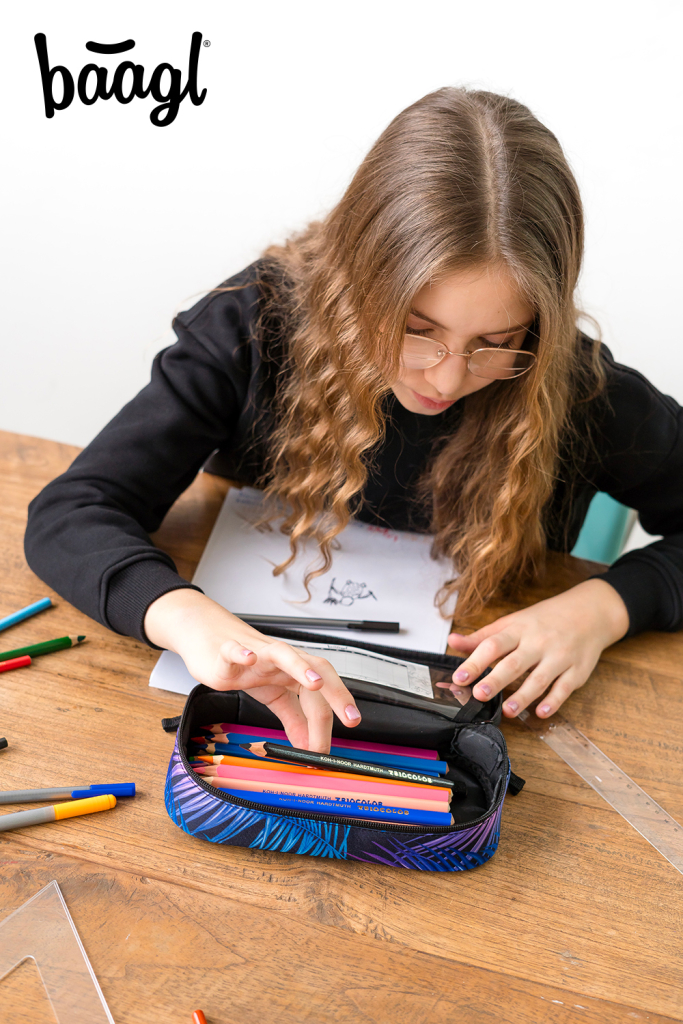 • Pevný školní penál s výklopnou vnitřní přepážkou.