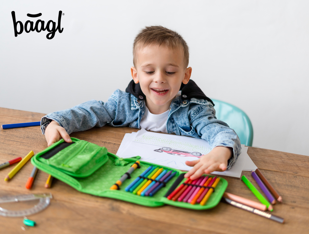 • Klasický školní jednopatrový penál s dvěma chlopněmi.