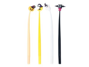 Zábavné gelové pero s halloweenskými motivy s modrou náplní. Pero má příjemný úchop a díky gelové náplni se s ním dobře píše. Barva: oranžová, žlutá, bílá, černá Motiv: dýně, měsíc, duch, netopýr Dodáváme ve 4 barvách dle skladové dostupnosti. Uvedená cena je za 1 ks.