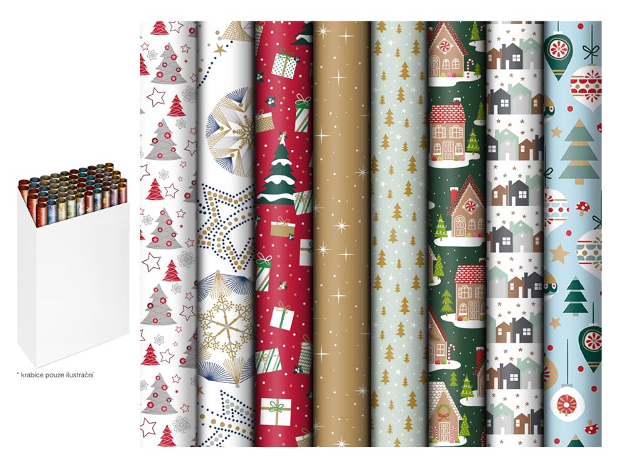 Vánoční balicí papír v roli v mixu 8 motivů. Připravte se na Vánoce a udělejte radost svým blízkým nejen obsahem, ale i krásným vzhledem Vašich dárků. Nezapomeňte, že krásně zabalený dárek přináší ještě větší radost. U nás najdete vše, co potřebujete pro dokonalé zabalení dárků – od balicího papíru až po stužky a jmenovky.