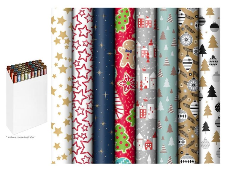 Vánoční balicí papír v roli v mixu 8 motivů. Připravte se na Vánoce a udělejte radost svým blízkým nejen obsahem, ale i krásným vzhledem Vašich dárků. Nezapomeňte, že krásně zabalený dárek přináší ještě větší radost. U nás najdete vše, co potřebujete pro dokonalé zabalení dárků – od balicího papíru až po stužky a jmenovky.
