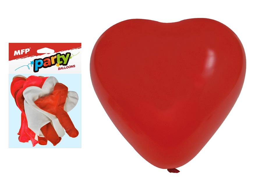 – 12 ks balónků ve tvaru srdíčka – v bílé a červené barvě