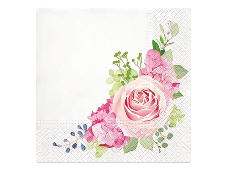 Třívrstvý papírový ubrousek. Krásné kvalitní ubrousky s motivem květů na bílém podkladu vykouzlí příjemnou
