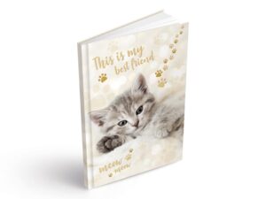 Školní sešit čtvereček ve formátu A5, v tmavě fialové barvě, s motivem tygra, v deskách z křídového papíru.