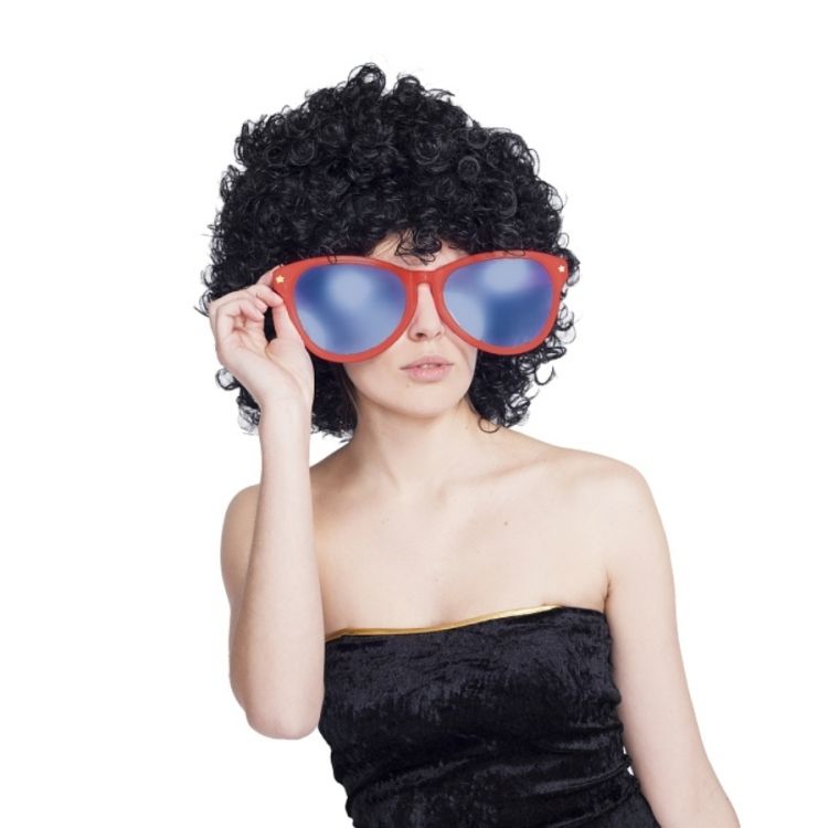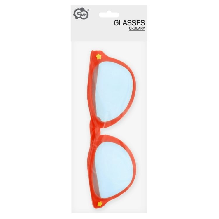 Balení obsahuje 1 červené párty brýle s modrými skly.