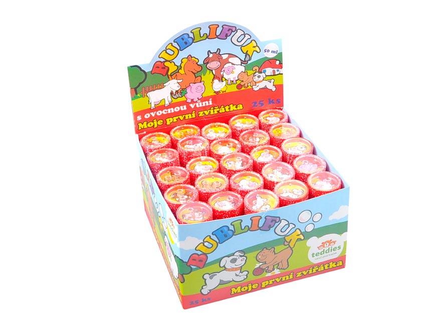 Bublifuk Moje první zvířátka s ovocnou vůní. Součástí víčka je hlavolam a obrázek zvířátka. Bublifuk – to je přece nejlepší zábava pro celou rodinu, která nikdy neomrzí. Vhodný pro každodenní použití ale také na dětské párty, kde určitě nesmí chybět!