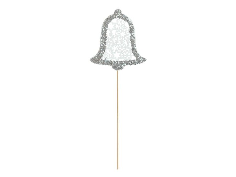 Vánoční dekorace, zápich zvonek v bílé barvě s glitrem. Ozdobte si květináč nebo jinou