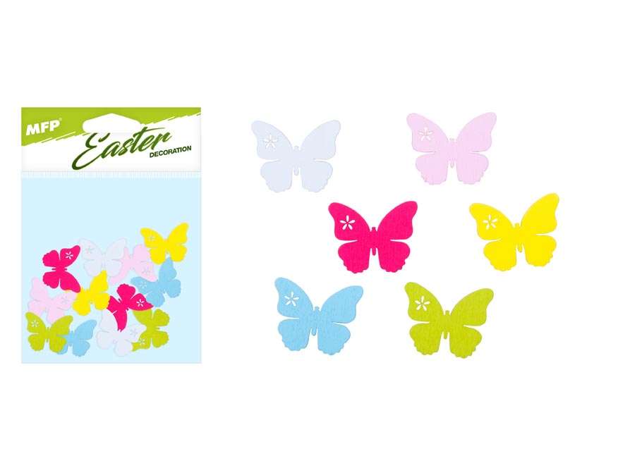 Velikonoční dřevěná dekorace motýl v mixu barev. Plánujete si udělat pohodové odpoledne a vyzdobit si dům nebo zahradu a přivítat tak jaro? Pak vám nesmí chybět tyto krásné dekorace v podobě různě barevných motýlů. Dekoraci lze použít k aranžování velikonočních věnců nebo větviček. Vyrobeno z překližky.