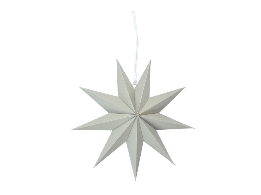 Dekorace skládací papírová hvězda v šedé barvě. Obsahuje zlatou šňůrku na zavěšení a díky svému netradičnímu provedení krásně ozdobí váš vánoční stromek, vchodové dveře a okno. Díky tomu že je hvězda papírová a skládací, tak ji můžete snadno po svátcích složit a nezabere téměř žádné místo.