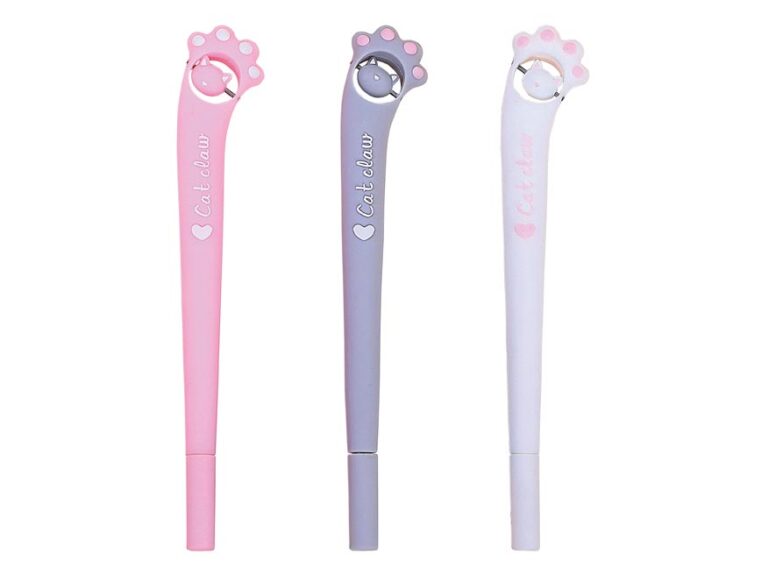 Zábavné gelové pero s modrou náplní a motivem kočičí packy. Pero má příjemný úchop