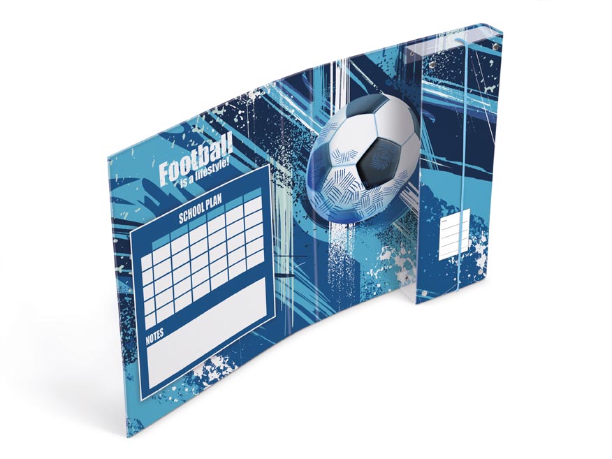Školní desky na sešity ve formátu A5 s motivem fotbalového míče jsou nezbytnou součástí vybavení každého školáka. Desky jsou vyrobeny z kvalitního lepenkového kartonu potaženého laminem, který spolehlivě chrání sešity a další školní potřeby před poškozením. Díky praktické gumičce drží obsah bezpečně uvnitř, takže se sešity ani pracovní listy nepomačkají a zůstanou vždy v pořádku. S těmito veselými deskami bude každý den ve škole o něco zábavnější!