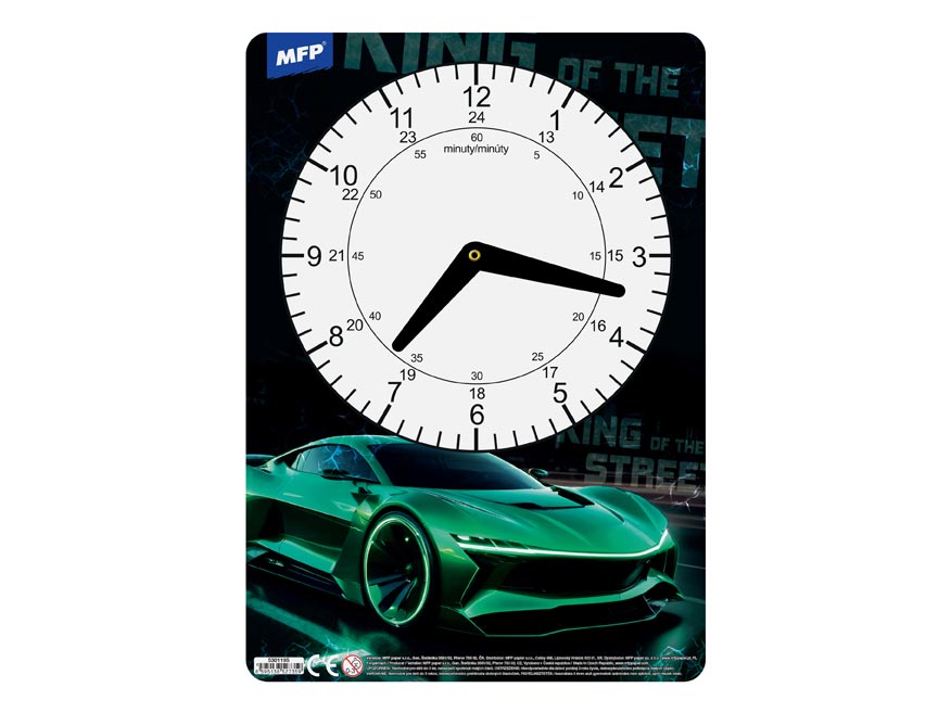 Dětské papírové hodiny v mixu chlapeckých motivů. Didaktická pomůcka, dobře využitelná k výuce času u dětí předškolního věku nebo u prvňáčků. Tyto cvičné hodiny nesmí chybět Vašemu dítěti při nástupu do první třídy základní školy.