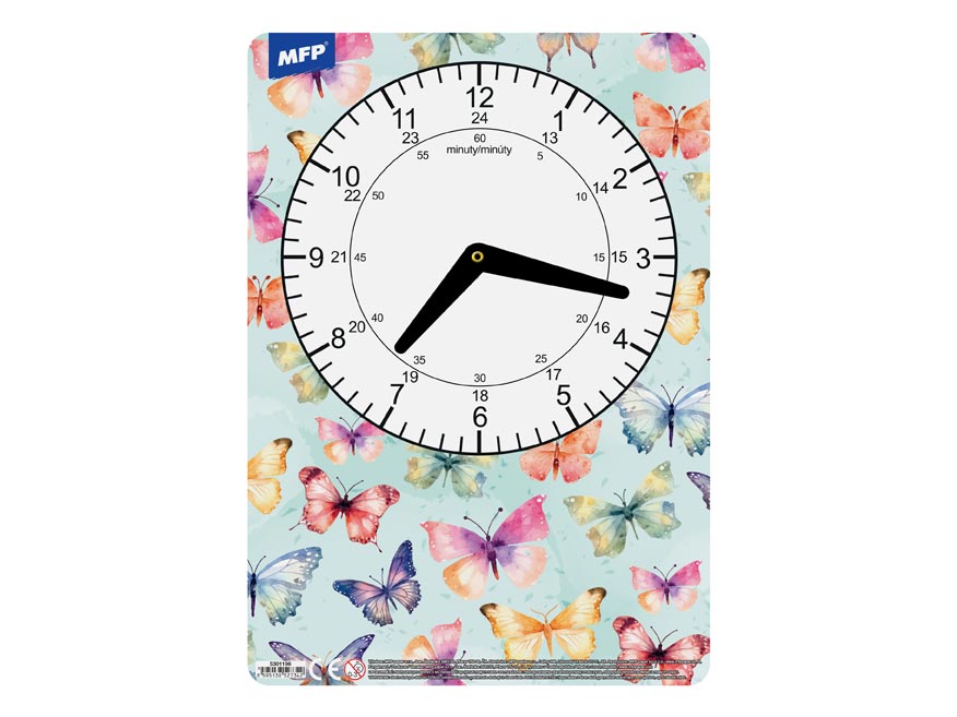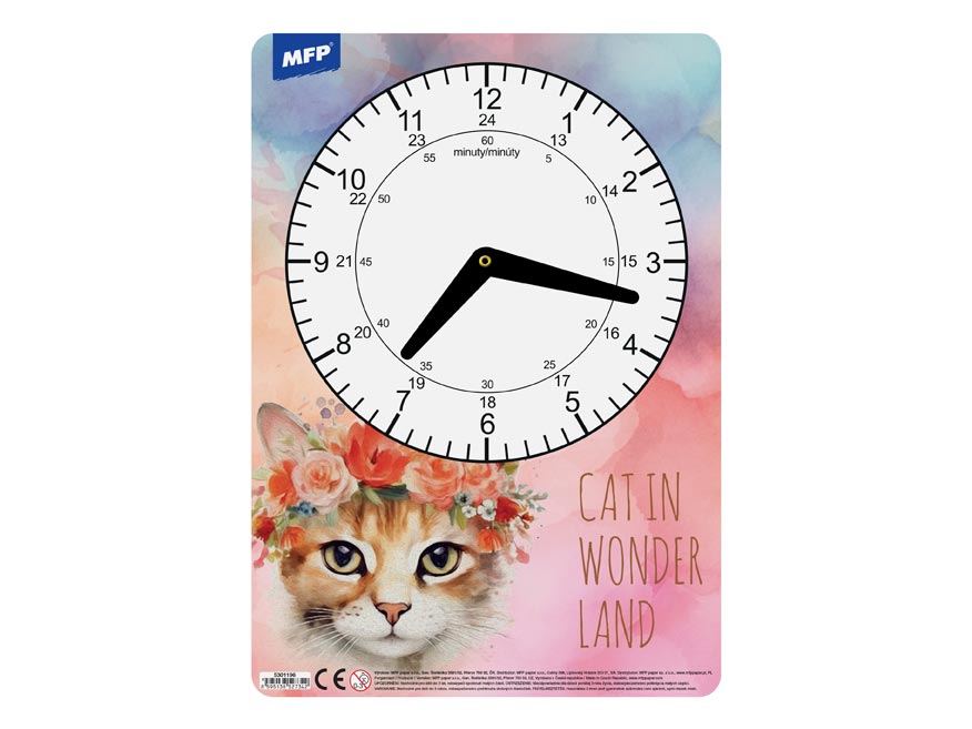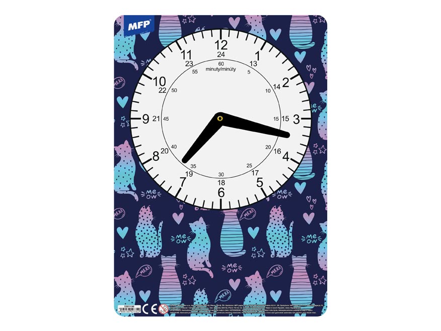 Dětské papírové hodiny v mixu dívčích motivů. Didaktická pomůcka, dobře využitelná k výuce času u dětí předškolního věku nebo u prvňáčků. Tyto cvičné hodiny nesmí chybět Vašemu dítěti při nástupu do první třídy základní školy.
