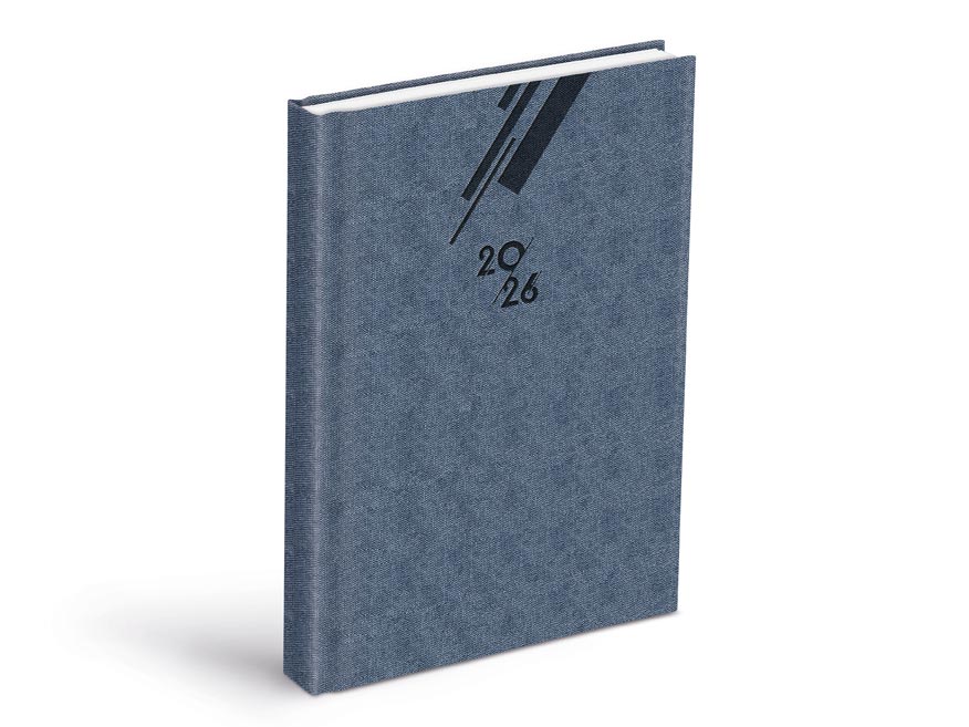 Modrý denní diář 2026 ve formátu A5 nabízí čistý a profesionální vzhled s decentním grafickým prvkem na obálce. Skvělý společník do kanceláře, batohu i na pracovní stůl – jednoduše tam, kde potřebujete mít jasno.