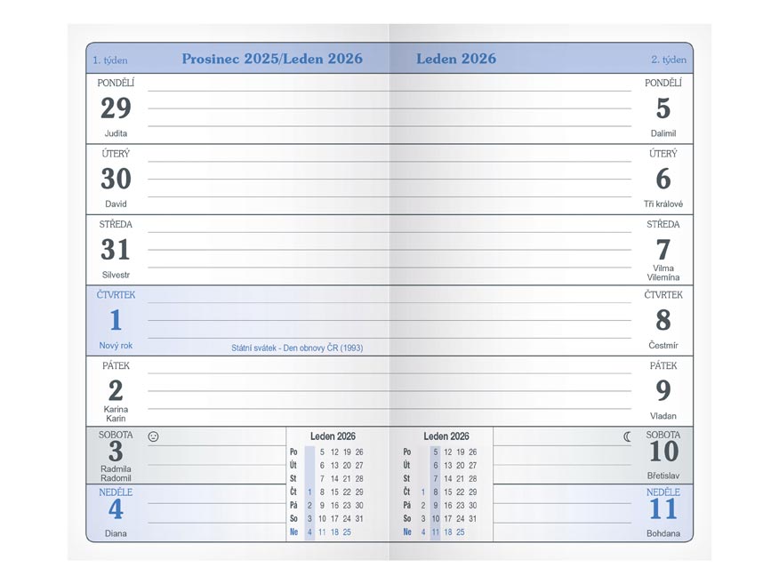 Týdenní diář 2026 s lesklým lamino povrchem je ideálním nástrojem pro každodenní organizaci. Je navržen tak, aby vás podpořil při plánování pracovních úkolů i osobních aktivit, aniž by zabíral zbytečně mnoho místa.
