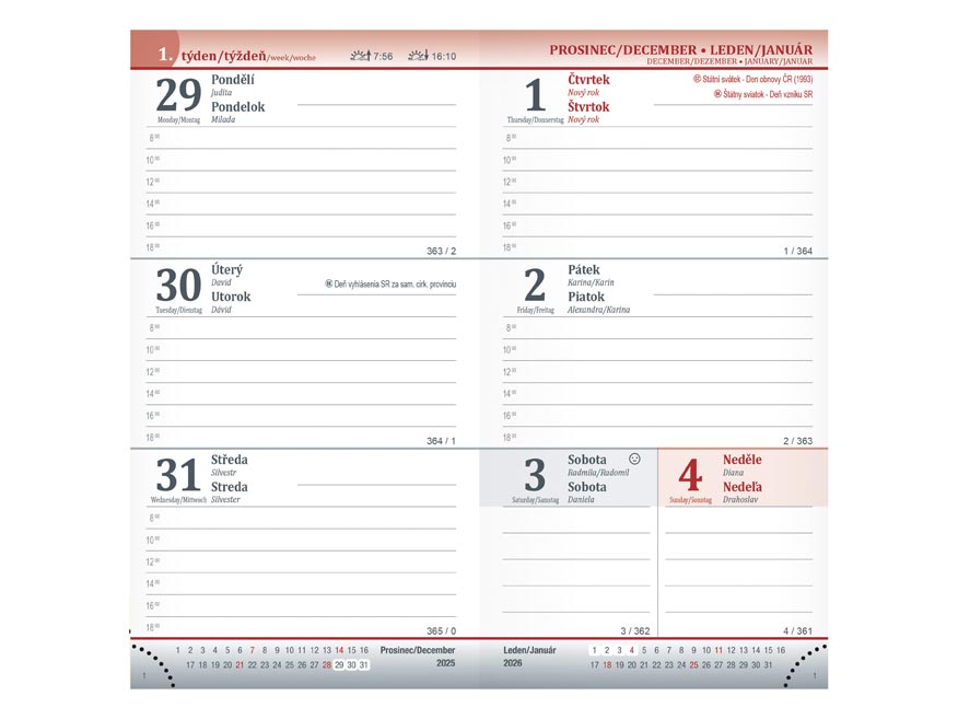 – plánovací kalendář