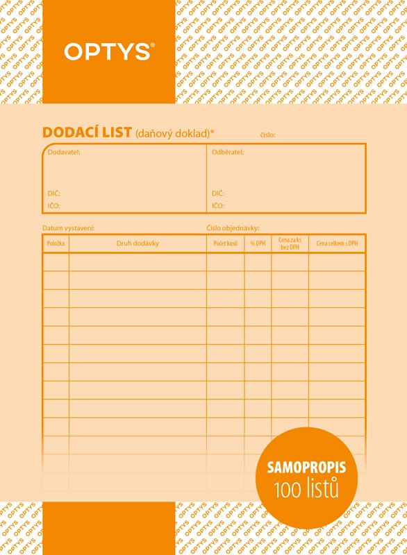 obsahuje 100 listů odtržitelných perforací, se zakládacím děrováním