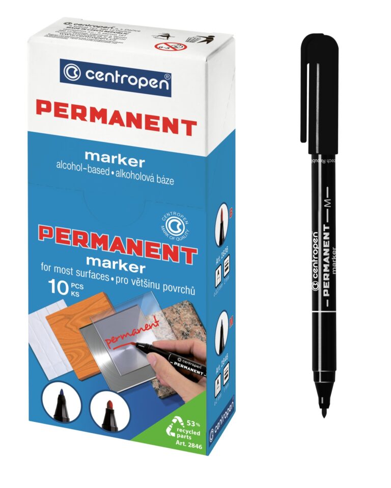 10/ permanentní popisovač, píše na většinu povrchů, odolá vodě, otěru, povětrnostním vlivům, alkoholová báze,