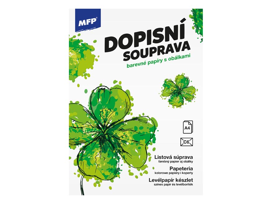 Dopisní souprava s obrázkem čtyřlístků pro štěstí. Píšete rádi dopisy svým známým? Pořiďte si u nás krásné dopisní papíry s různými motivy a nezapomeňte ani na psací potřeby.