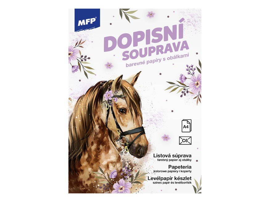 Dopisní souprava s obrázkem koně. Píšete rádi dopisy svým známým? Pořiďte si u nás krásné dopisní papíry s různými motivy a nezapomeňte ani na psací potřeby.