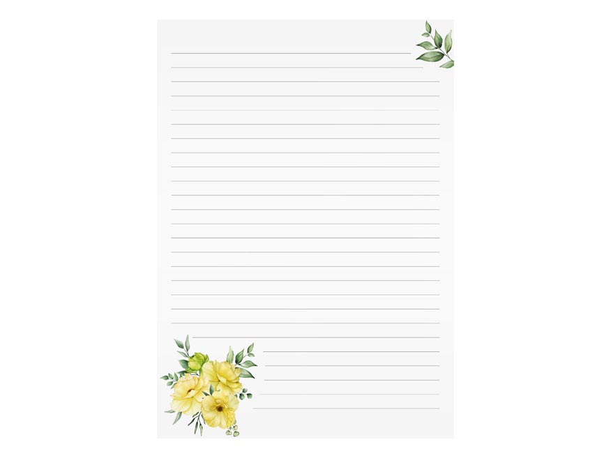 Tato svěží dopisní souprava se zářivými květy přináší energii a radost do každého řádku. Obsahuje linkované listy a ladící obálky, které se hodí pro osobní dopisy, přání i drobná poděkování.