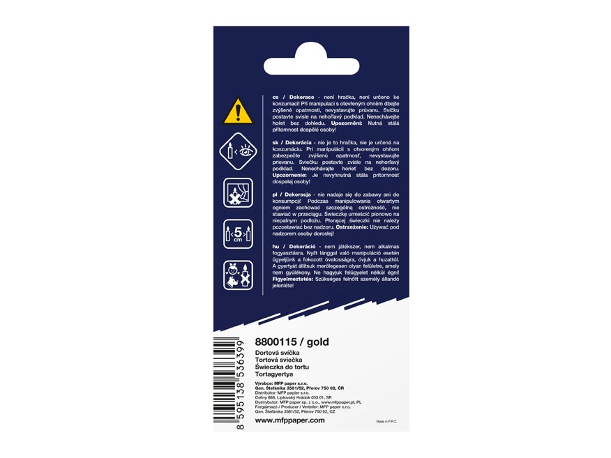 Svíčku postavte svisle na nehořlavý podklad. Nenechávejte hořet bez dohledu.