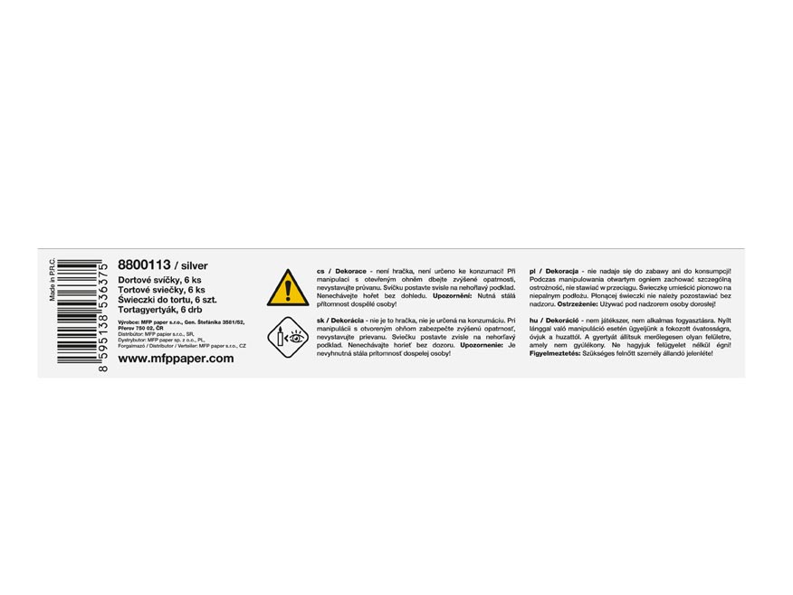 Svíčku postavte svisle na nehořlavý podklad. Nenechávejte hořet bez dohledu.