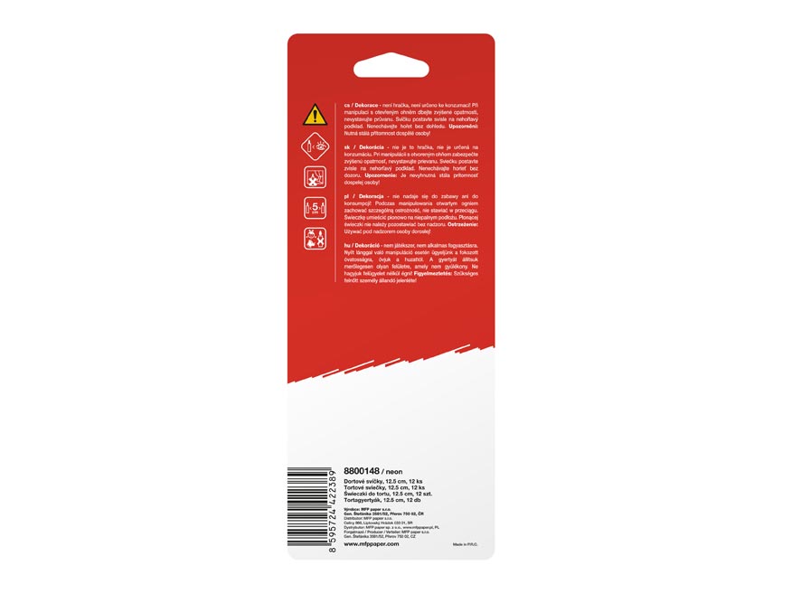 Dortové svíčky MFP neon 12ks 12,5cm Dortové svíčky. 47 Kč 21 skladem Dortové svíčky MFP neon 12ks 12,5cm množství Přidat do košíku