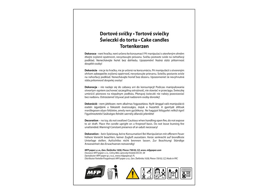 Svíčku postavte svisle na nehořlavý podklad. Nenechávejte hořet bez dohledu.
