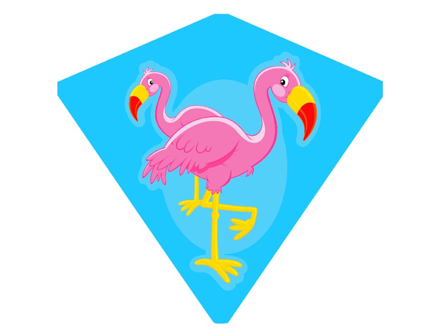 Dětský drak – plameňák na modrém podkladu. Kdy jindy pouštět draky než na podzim! Že ještě žádného nemáte? Pořiďte si u nás z pestré škály létajících draků. Parádní létající drak se bude na obloze určitě moc dobře vyjímat. Tak hurá na drakiádu! Pojďte se společně vyřádit při pouštění draků, třeba se zajímavými pestrými motivy.