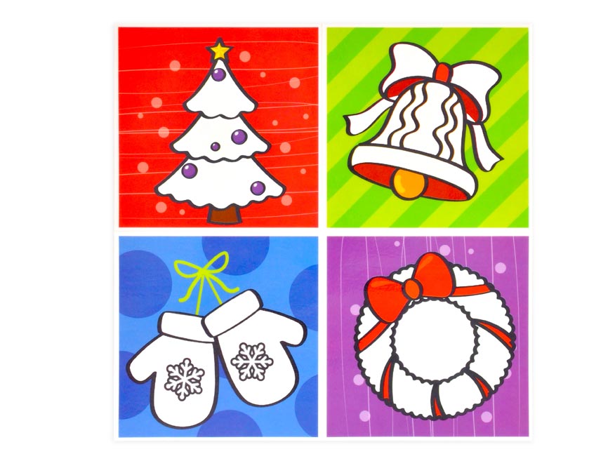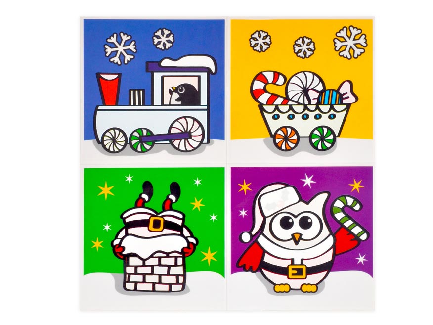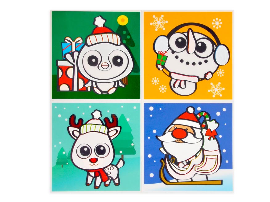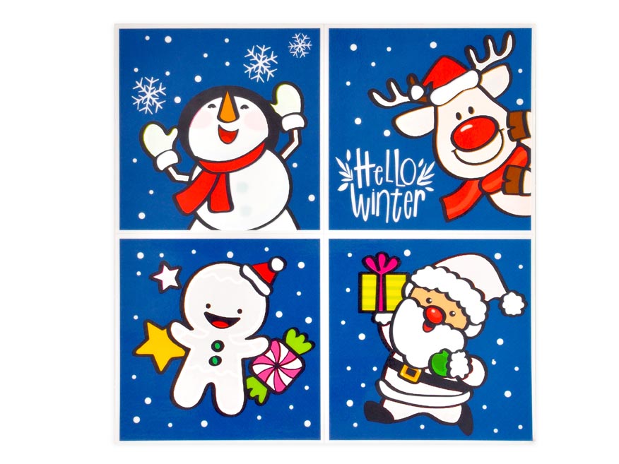 Fólie do koupelny, na kterou lze malovat vodou. Vyzdobte dětem koupelnu zábavnými obrázky, které přilepíte na kachličky, zrcadlo či okna. Obrázky jsou na fólii, která antistaticky přilne na hladký povrch. Navíc po navlhčení obrázku vystoupnou barvičky. Po zaschnutí barvy opět zesvětlají. Obrázek lze opakovaně odlepit a přilepit na jiné místa. Na obrázcích najdete vánoční tématiku.