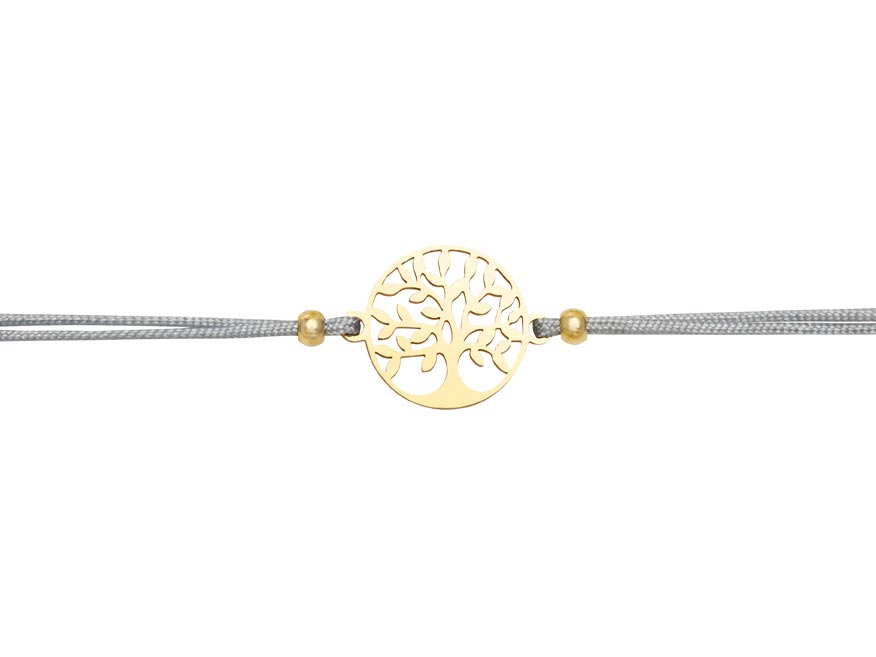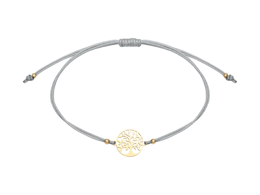 Zlatavý vzhled dodává motivu elegantní charakter, i když se nejedná o pravé zlato, ale pouze o barevné provedení. Absence niklu zajišťuje šetrnost k pokožce. Velikost náramku si nastavíte podle potřeby – posuvné uzlíky se postarají o pohodlné nošení.