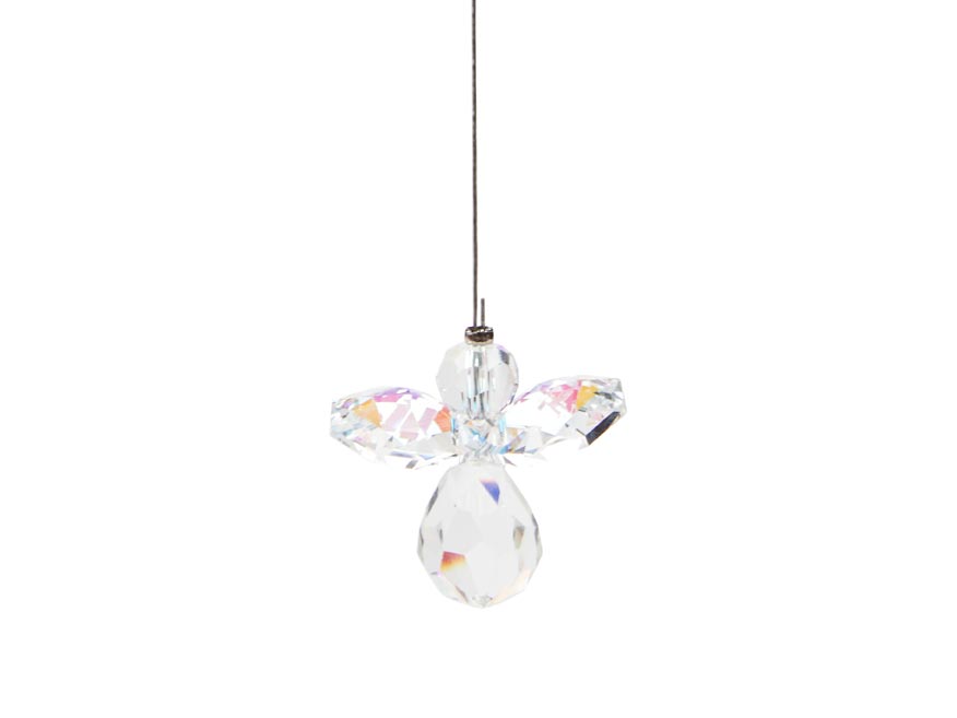 Andílek je navlečený na jemné struně, která zároveň slouží k zavěšení, takže jej snadno umístíte do okna, na lustr či vánoční stromeček. Při dopadu světla se okamžitě rozzáří a stane se nepřehlédnutelnou dekorací.