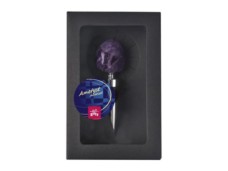 Zátka na víno z kolekce Gifty zdobená fascinujícím polodrahokamem ametystem, proslulým svou nádhernou fialovou