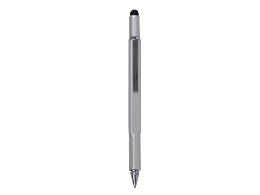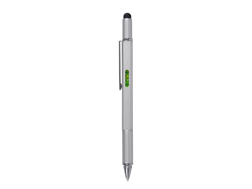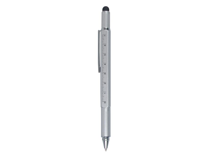 Dárkové pero Grand Slam 5v1 od Gifty je elegantní kovové pero, které v sobě ukrývá pět praktických funkcí. Kromě klasické propisky s jemně píšícím modrým inkoustem nechybí ani šikovný šroubovák, který je důmyslně ukrytý pod dotykovou koncovkou pera. Na těle pera najdete měřítko – z jedné strany v centimetrech, z druhé v palcích (inches). Vestavěná vodováha usnadní kontrolu roviny a měkký stylus se hodí pro pohodlné ovládání dotykových zařízení.