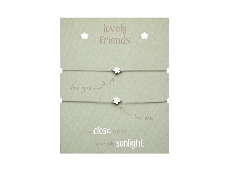 Náramky jsou upevněny na dárkové kartičce s nápisem for you a for me. Tento detail symbolicky vyjadřuje propojení dvou lidí – jeden náramek si necháte pro sebe a druhý věnujete někomu blízkému. Lovely Friends tak nejsou jen ozdobou, ale i krásným symbolem přátelství, lásky nebo vzájemné podpory.