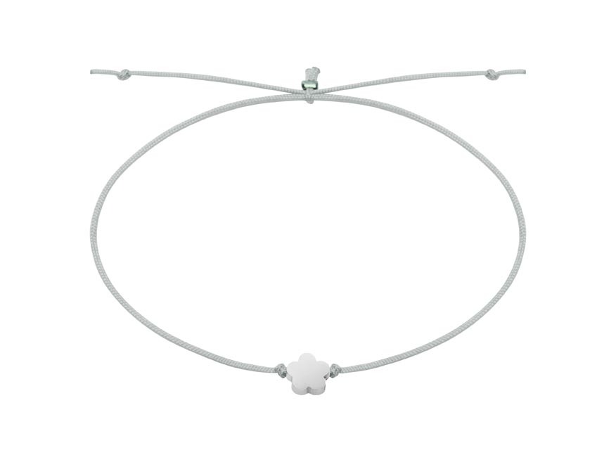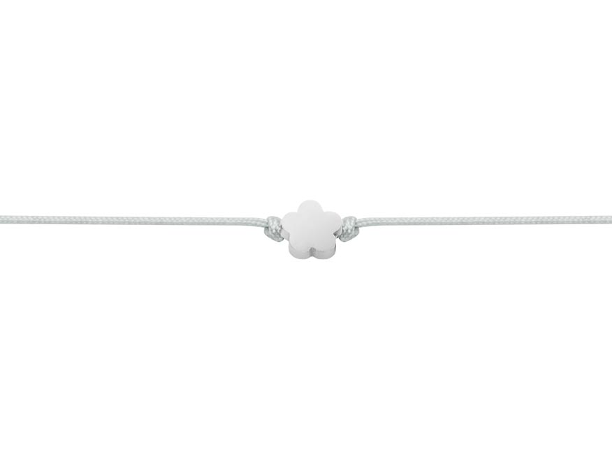 Na jemné textilní šňůrce je zavěšen drobný kovový přívěsek ve tvaru květiny ve stříbrném provedení. Díky minimalistickému designu se náramky hodí pro každodenní nošení, snadno se kombinují a sluší všem věkovým kategoriím.
