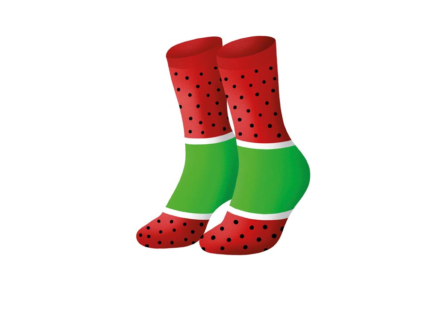 Kdo říká, že ponožky musejí být obyčejné? Model NANUK od Gifty dokazuje opak – na první pohled připomene sladkou letní pochoutku, ale ve skutečnosti ukrývá pohodlný pár ponožek ve velikosti 43–45.