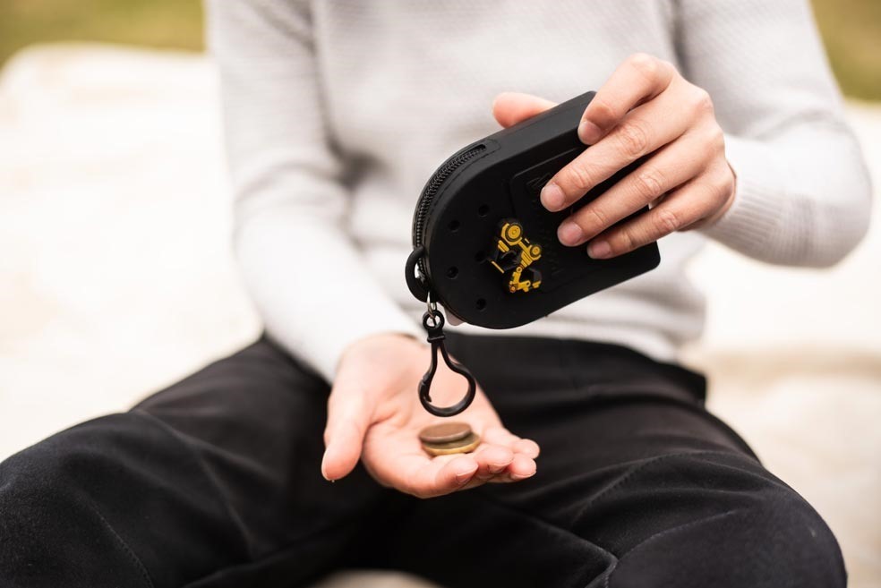 Silikon je pružný, drží tvar a snadno se čistí. Zip spolehlivě uzavře mince, bankovky i drobnosti, které zůstanou bezpečně uložené. Přední stranu doplňuje perforace s ozdobným pinem, jenž je součástí balení a dodává peněžence nenápadný hravý prvek.