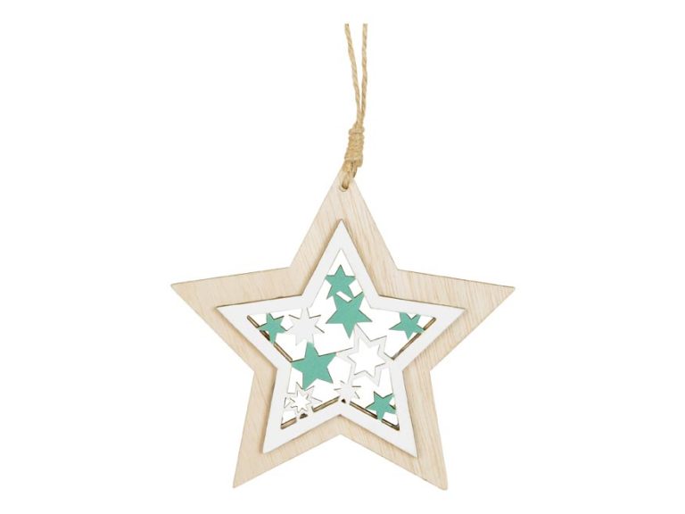Vánoční dřevěná dekorace hvězda se závěsem. Krásná, vánoční dekorace vyrobena ze dřeva s provázkem, který umožňuje snadné zavěšení. Lze použít na různé dekorace jako zavěsit na dveře či okno. Dřevěné ozdoby mají tu výhodu, že se při pádu hned nerozbijí a můžete si tak zkrášlit vaše bydlení.