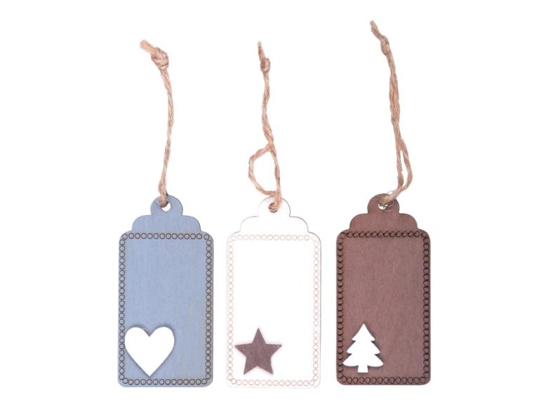 Dřevěné vánoční jmenovky na dárky v šedé, hnědé a přírodní barvě. Každá z nich je ozdobena malým symbolem Vánoc (hvězda, stromeček, srdce), který je taktéž ze dřeva. Dárky ozdobené těmito jmenovkami budou vypadat stylově a originálně. Lze na ně psát propiskou, gelovkou nebo fixou. Jsou vhodné i pro gravírování.
