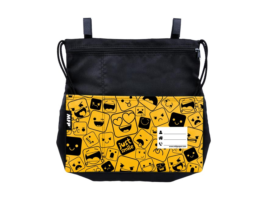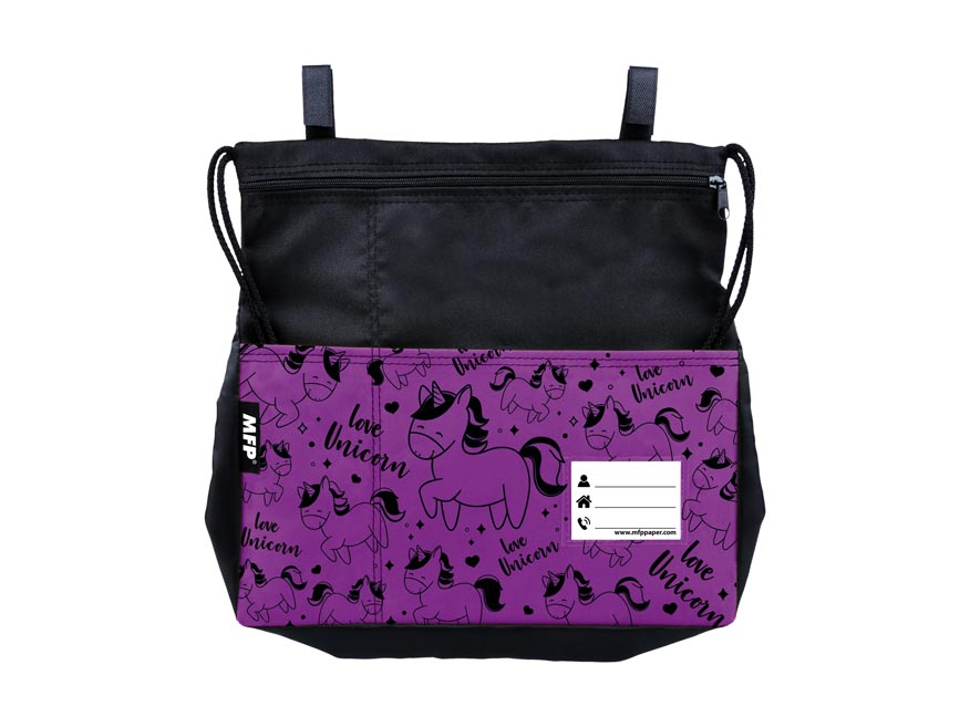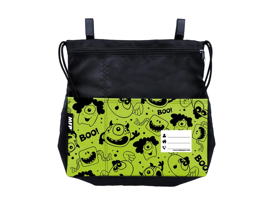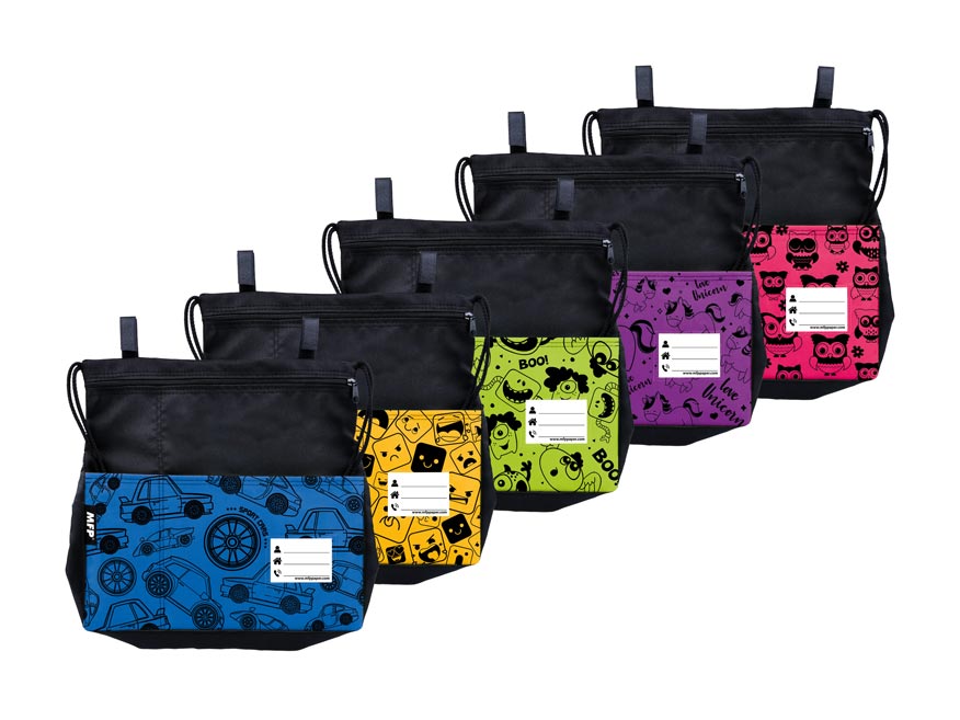 Školní omyvatelný kapsář na lavici. Kapsář má celkem 3 komory. Hlavní kapsa je opatřena zipem, dvě přední kapsy jsou volně přístupné. Na horní straně jsou dvě oka opatřené suchým zipem na přidělání k horní konstrukci lavice. V rozích jsou provázky k připevnění kapsáře k nožkám lavice nebo stolu. Na přední straně je průhledná kapsička s cedulkou, kde můžete napsat jméno dítěte, adresu a kontaktní telefon.