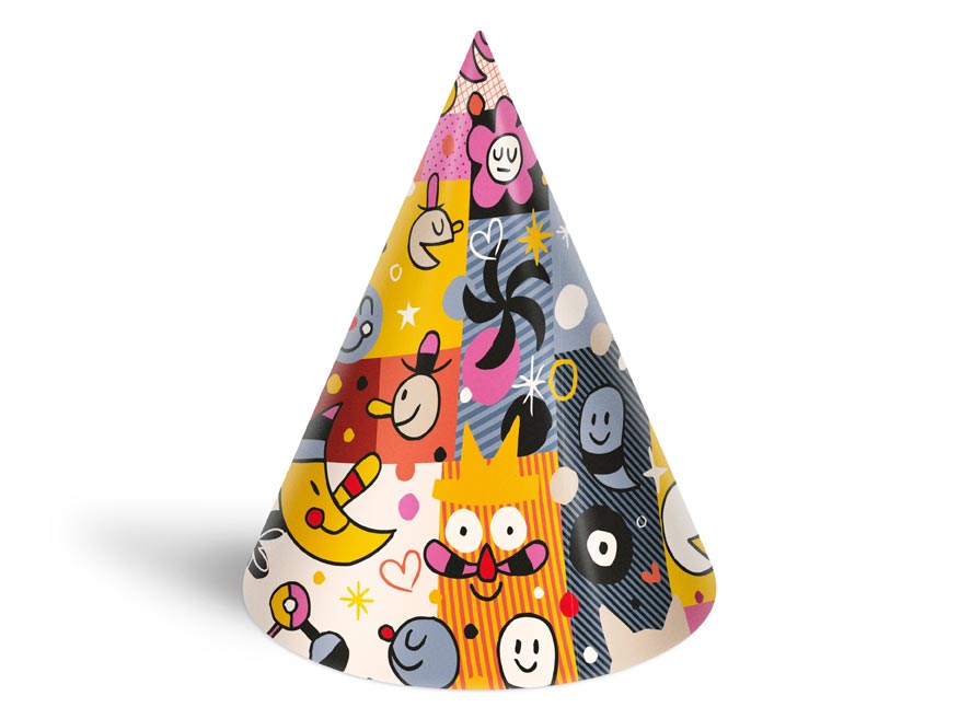 Narozeninový papírový párty klobouček. Karnevalový klobouček velice dobře drží na hlavě, díky kloboukové gumičce, kterou si dáte pod bradu. Udělejte radost oslavenci a uspořádejte velkou párty. Nezapomeňte koupit i frkačky a trumpety.