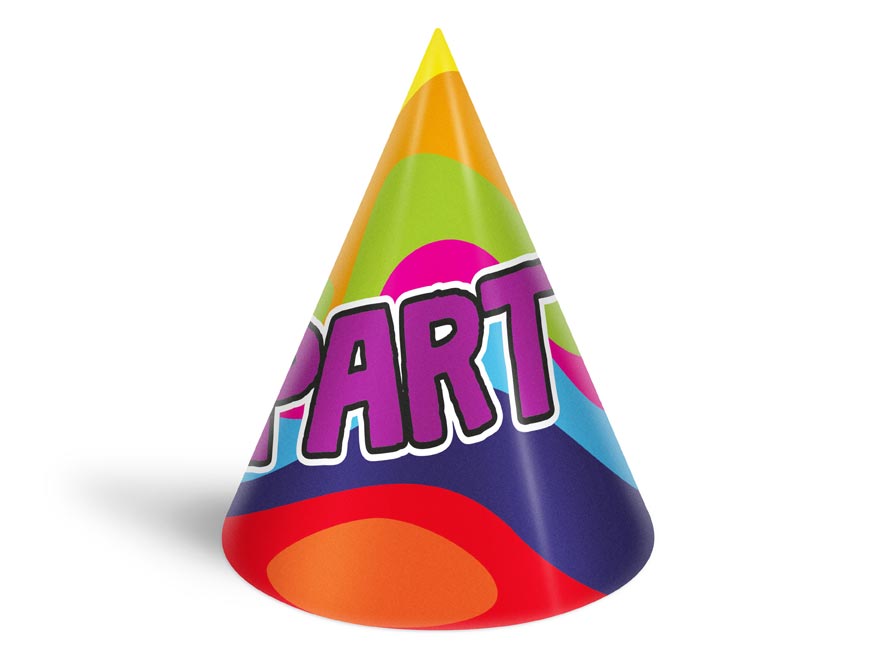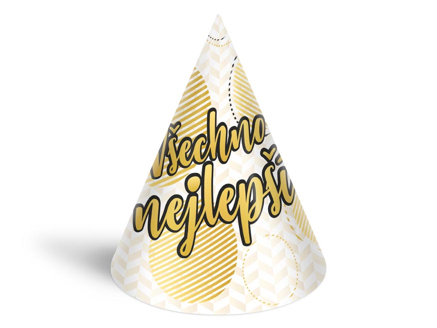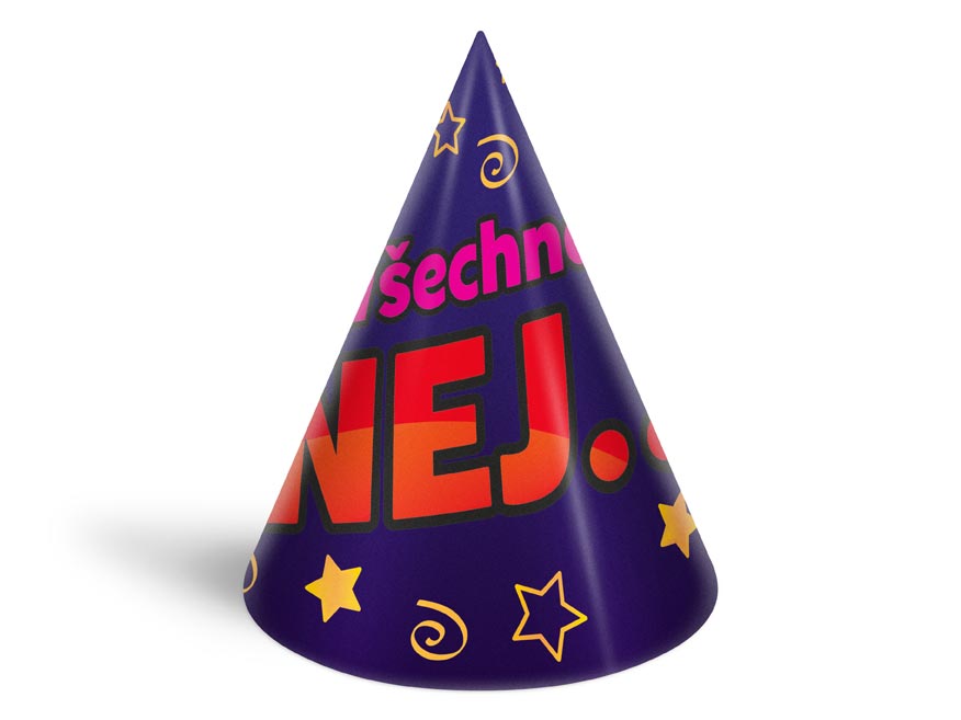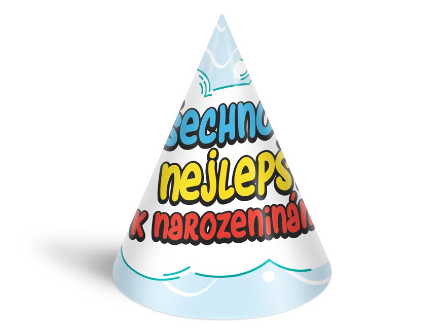 – 6 ks barevných kloboučků s různými párty motivy