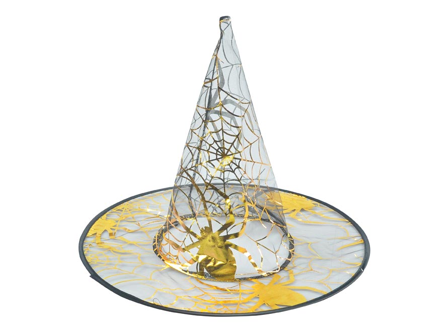 Klobouk čarodějnický černozlatý průhledný 39x32cm